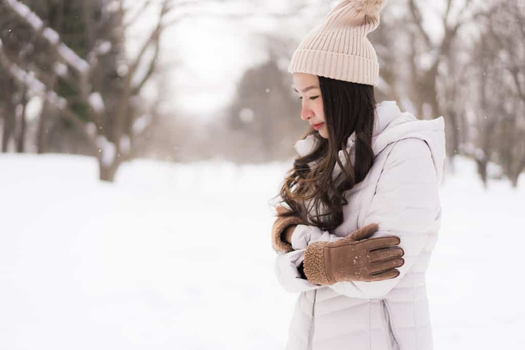 Skóra na dłoniach jest wyjątkowo cienka i mocno reaguje na mroźne powietrze. Staje się spierzchnięta, zaczerwieniona może dochodzić do pękania.  Skóra na dłoniach jest szczególnie podatna na odmrożenia, charakteryzujące się bladą, napiętą i pieczącą skórą. Dlatego niezwykle ważne jest kremowanie rąk kosmetykami ochronnymi i zakładanie rękawiczek.