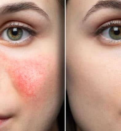 Dodatkowo bardzo skutecznym zabiegiem na rumień na twarzy jest zabieg pHformuła – C.R.COMPLEX. Zabieg oparty na mieszance kwasów: mlekowego, salicylowego, migdałowego oraz retinolu i nośnika PHDVC przez co skutecznie przebudowuje skórę oraz prowadzi do redukcji rumienia, zaczerwienienia, łagodzi stan zapalny i wspomaga leczenie trądziku różowatego, wzmacnia naczynia krwionośne i zapobiega ich uszkodzeniom.