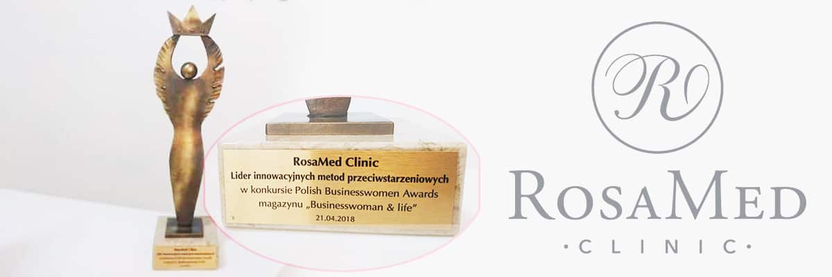 RosaMed Clinic otrzymała także nagrodę w konkursie Polish Businesswomen Awords magazynu Businesswoman & life, jako Lider innowacyjnych metod przeciwstarzeniowych